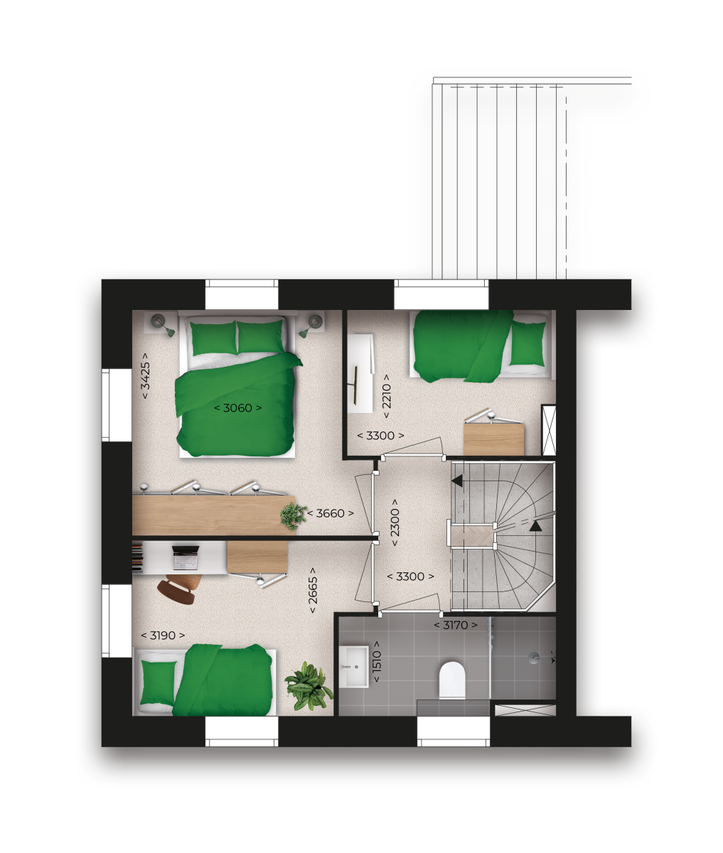 • Drie fijne slaapkamers